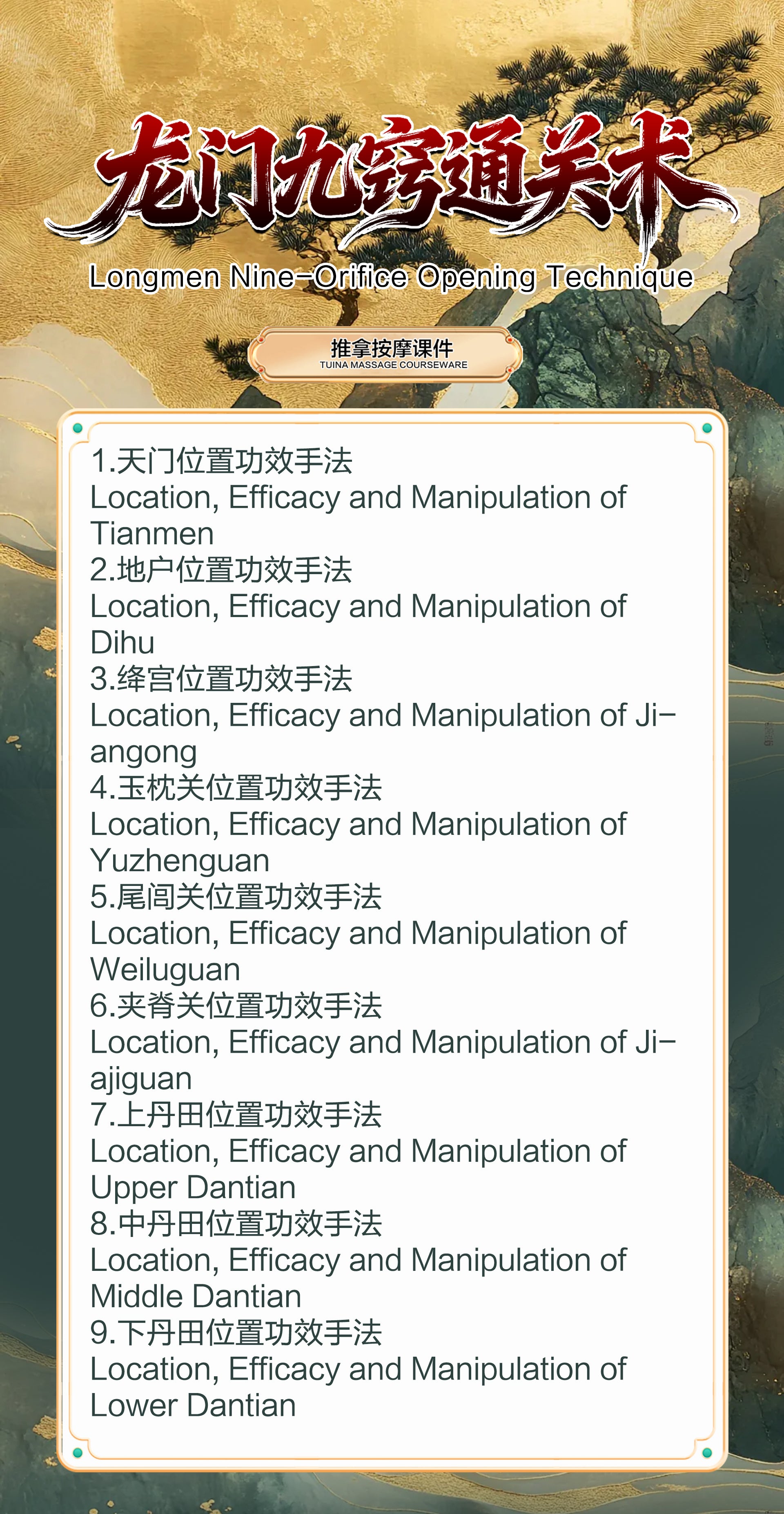 4.Everyone's physical condition is different, and so are the blood stasis points. But as long as you learn to open these nine orifices, you will greatly save the time for conditioning.